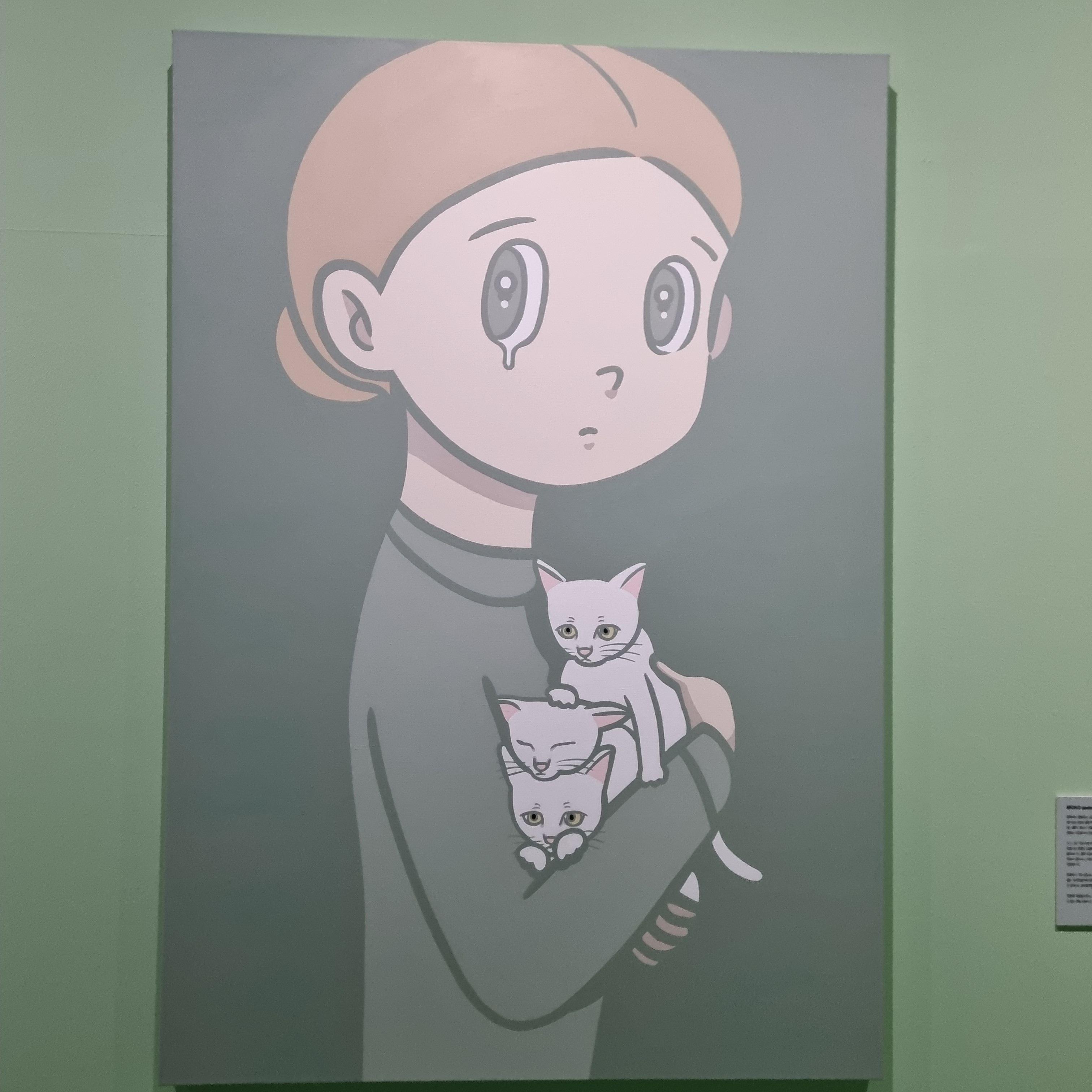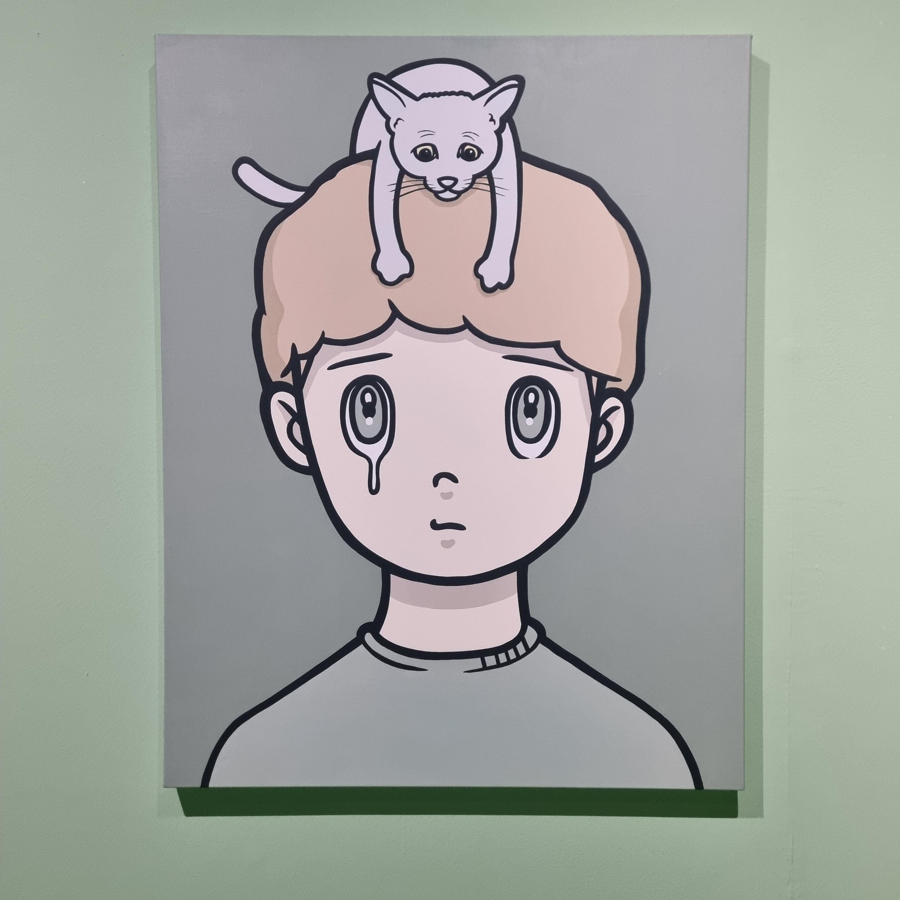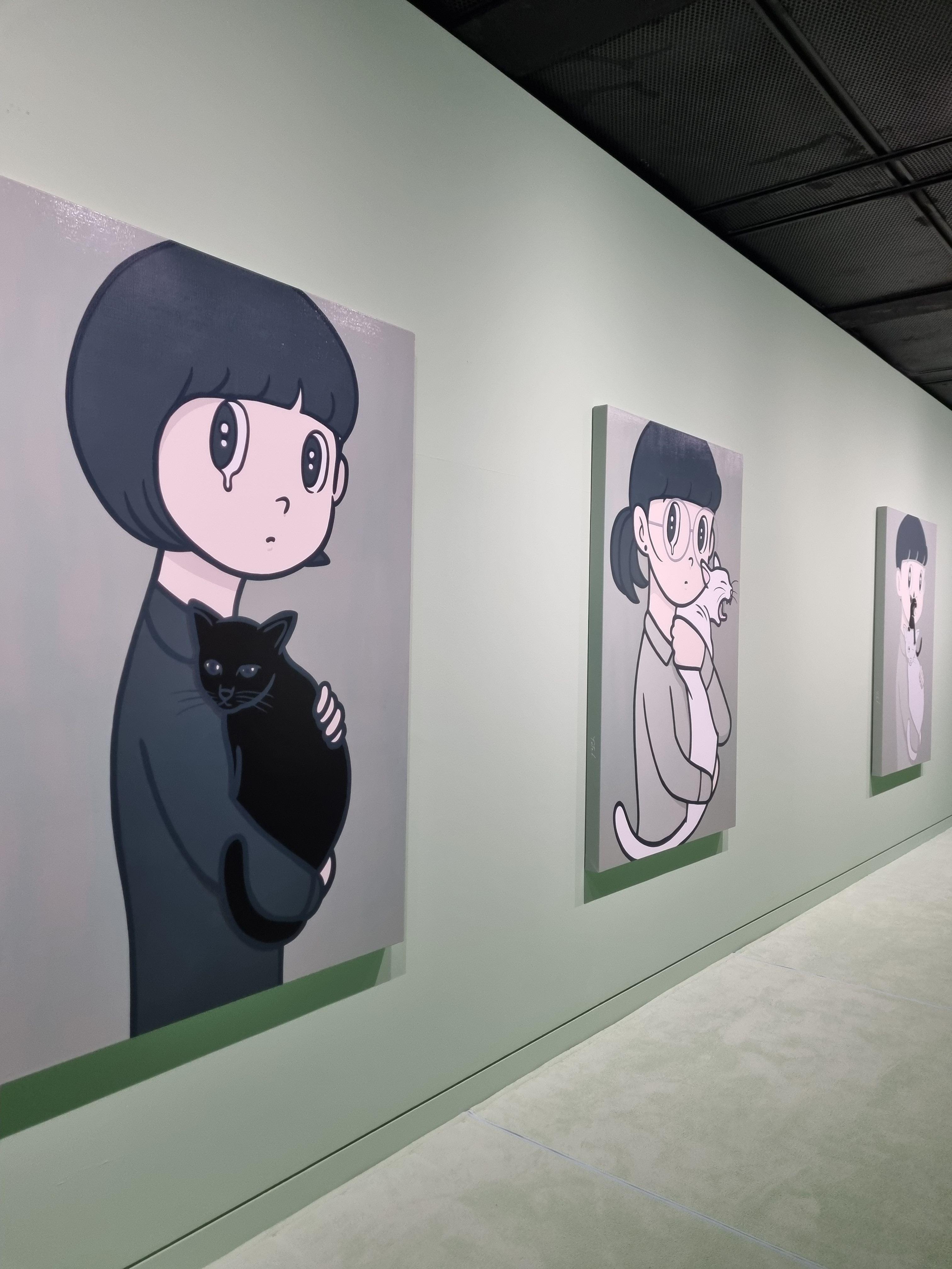 여기 작품 속 회색 고양이는 작가가 키우고 있는 고양이를 본떠 만든 것으로 이름은 모로코다.