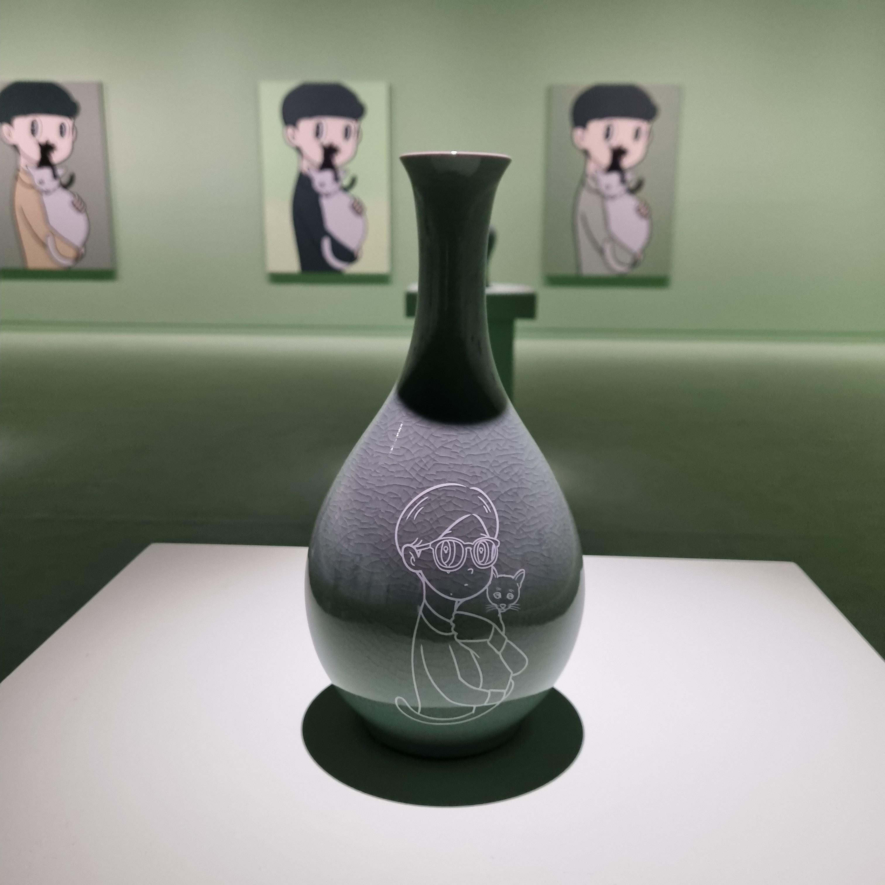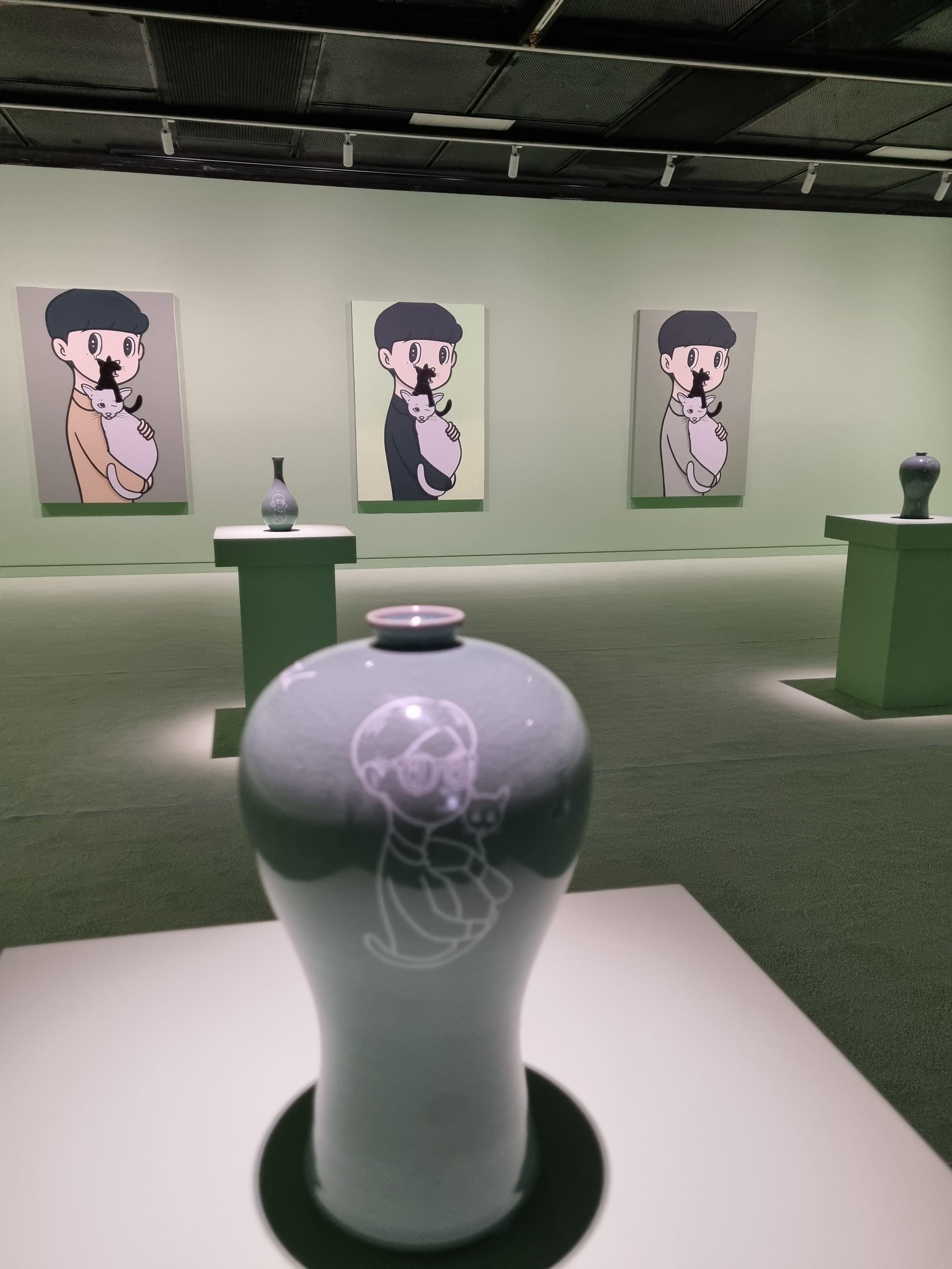 바닥에 깔린 푹신한 카페트와 고려청자, 그리고 하시즈메 유야의 작품이 어우러져 3월의 아주 유쾌하고 좋은 전시가 되었습니다.