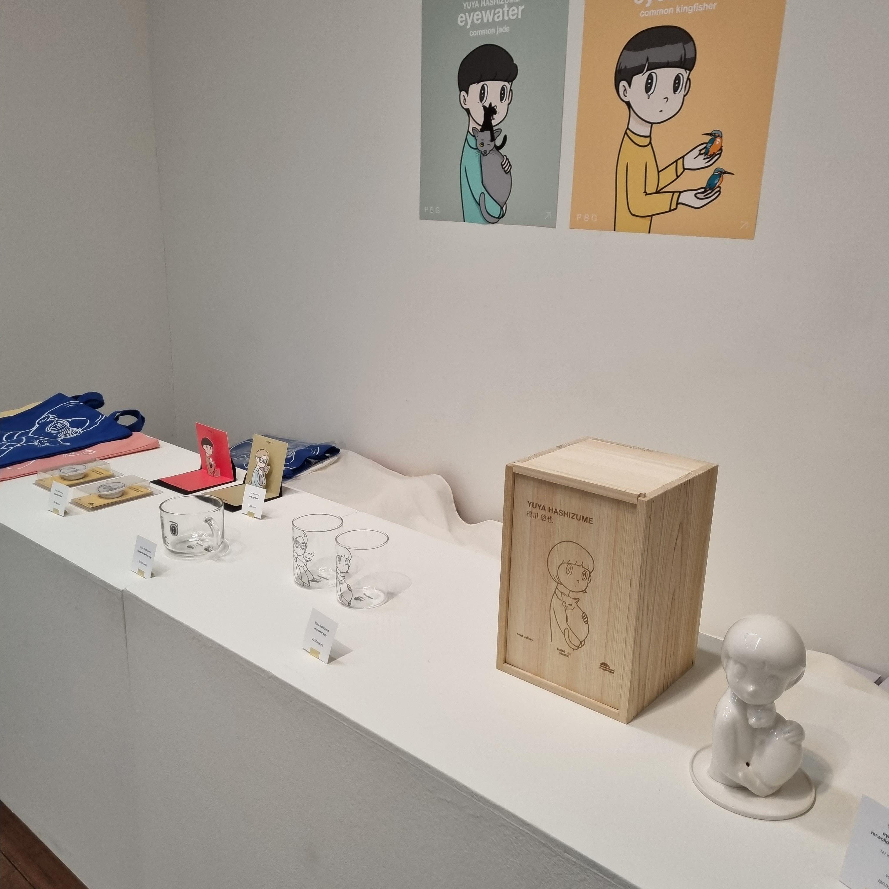 전시장 밖에는 하시즈메 유야 판화, 도자기, 에코백, 유리 머그 등을 파는 작은 잡화점이 있다.