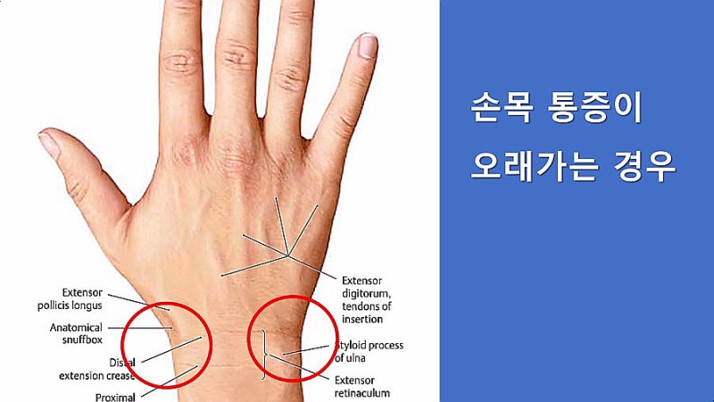 손목 힘줄윤활막염의 가장 흔한 형태인 드퀘르뱅병에서 통증은 손목의 엄지손가락 쪽에서 발생합니다. 가산팔뚝통증의원, 본라인한의원
