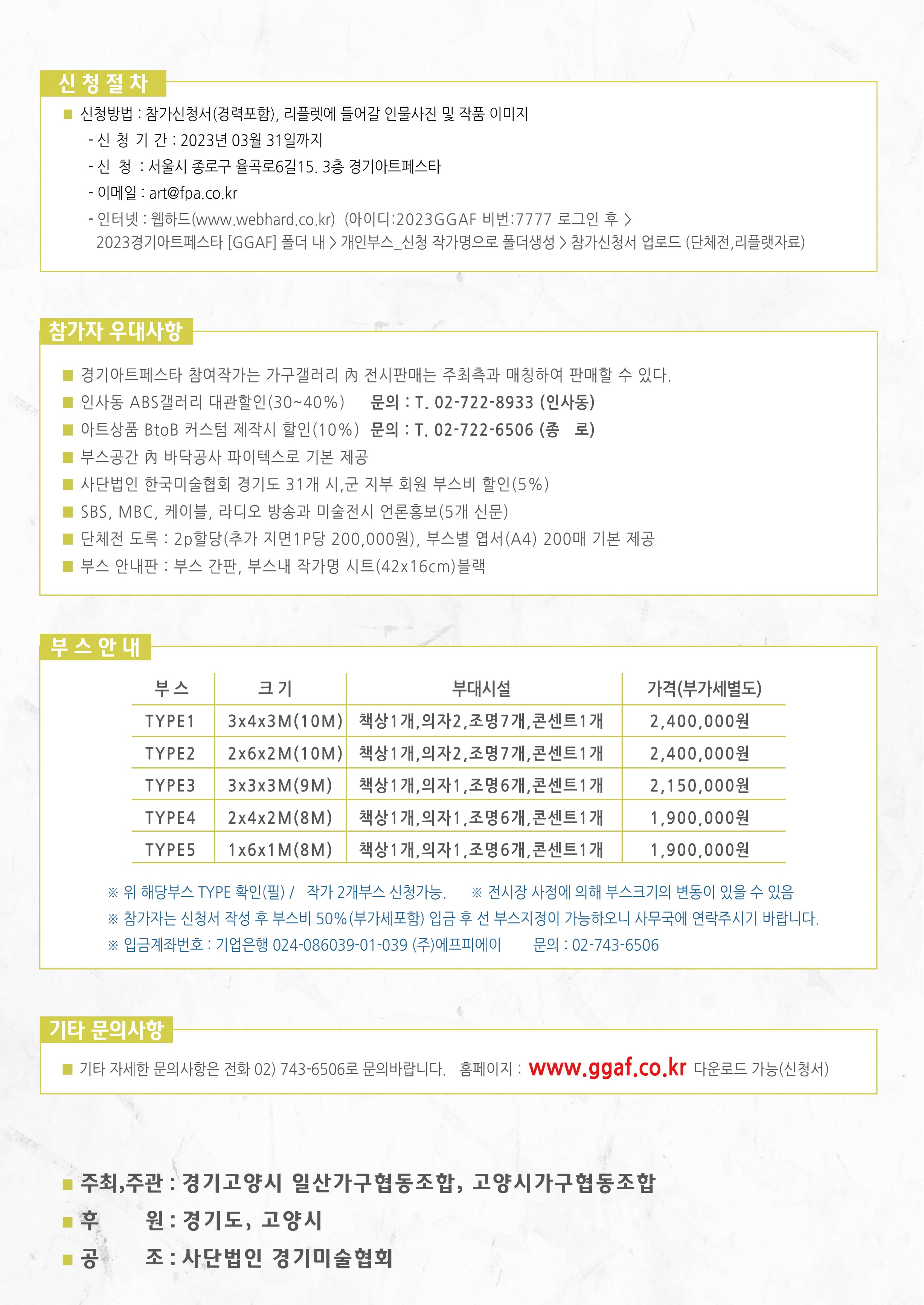5. 경기도 한국미술협회 31개 시·군·지회 회원의 부스비 감면(5%).