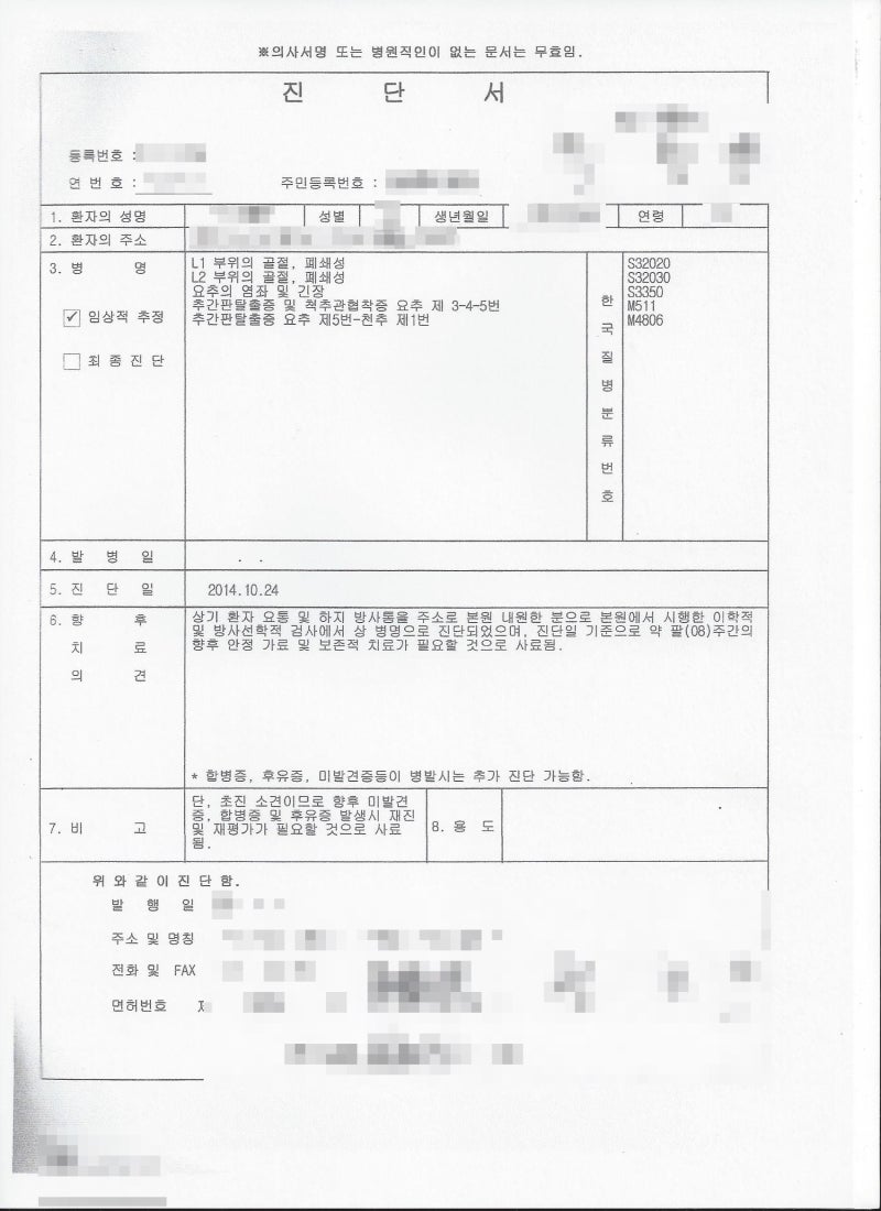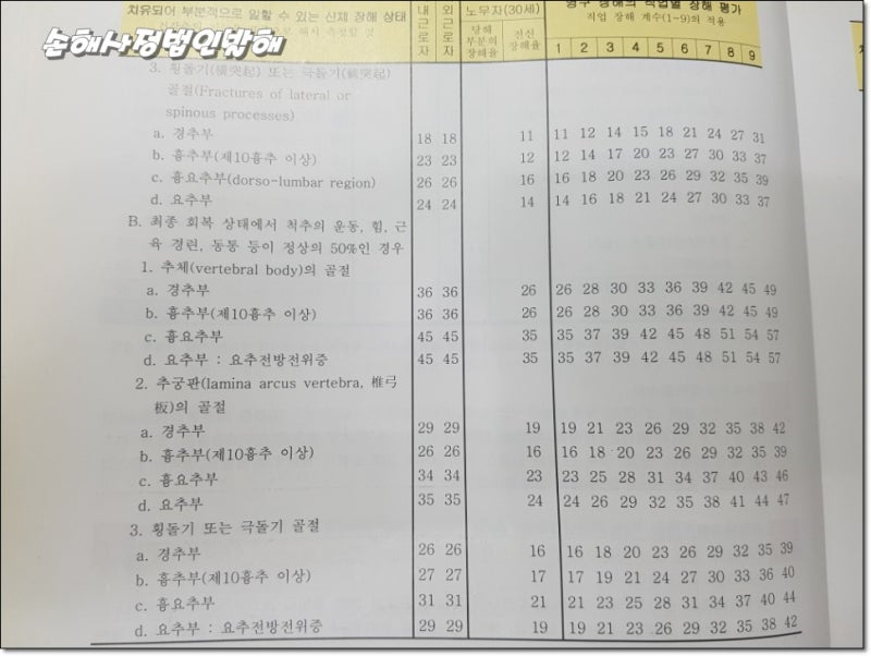 진단에 대한 인식과 환자의 현실 사이에는 불일치가 있습니다. 비수술적 보존적 치료를 하면 바로 입원할 수 있을 만큼 쉬운가요? 그래도 후유증은 정확히 확인해야 한다. 경추, 흉추, 요추의 해당 부위와 골절 정도(다발골절 등), 골절의 종류에 따라 일시적 장애 적용 범위는 18%~24%로 추정 McBride 손실률 테이블. 치료 중에는 활동적이고 집중적인 자세를 유지해야 합니다. 횡돌기 및 극돌기 골절에 대해 궁금하신 사항이 있으시면 아래 링크를 클릭 또는 탭하시면 상담이 가능합니다.