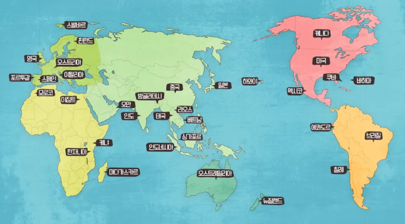 게임판에서 지도로 나라를 옮기면 이런 모습!