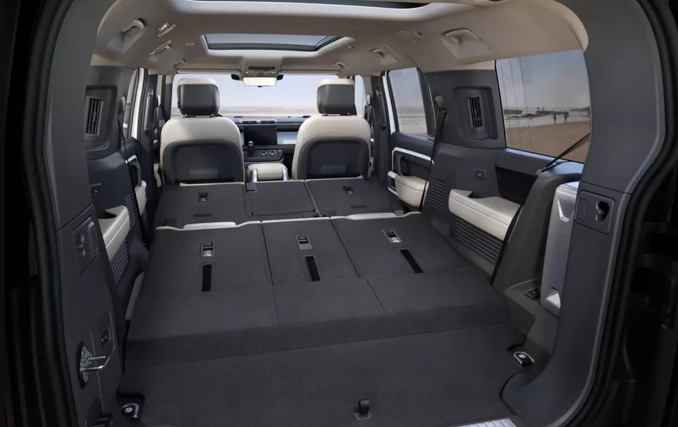 두 번째 인테리어입니다 디펜더 인테리어는 랜드로버의 전통적인 디자인을 유지하면서도 기능성과 실용성을 강조했습니다. 높은 천장과 넉넉한 적재 공간으로 실내 공간이 넓고 다양한 실내 옵션으로 많은 승객을 수용할 수 있습니다.