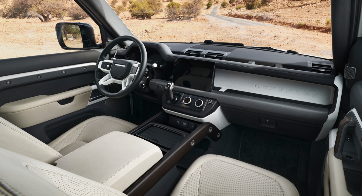 최신 기술이 접목된 디펜더는 대형 디스플레이, 내비게이션, 블루투스 기능, 사운드 시스템 등을 갖춘 인포테인먼트 시스템과 주차 보조, 차선 이탈 경고, 크루즈 컨트롤, 적외선 카메라, 자동 비상 제동 시스템 등의 안전 기능을 갖췄다. .안전운전 보조장치로 장착되어 있습니다.