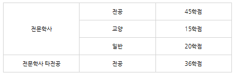 취득 학점 수는 자격에 따라 다릅니다.